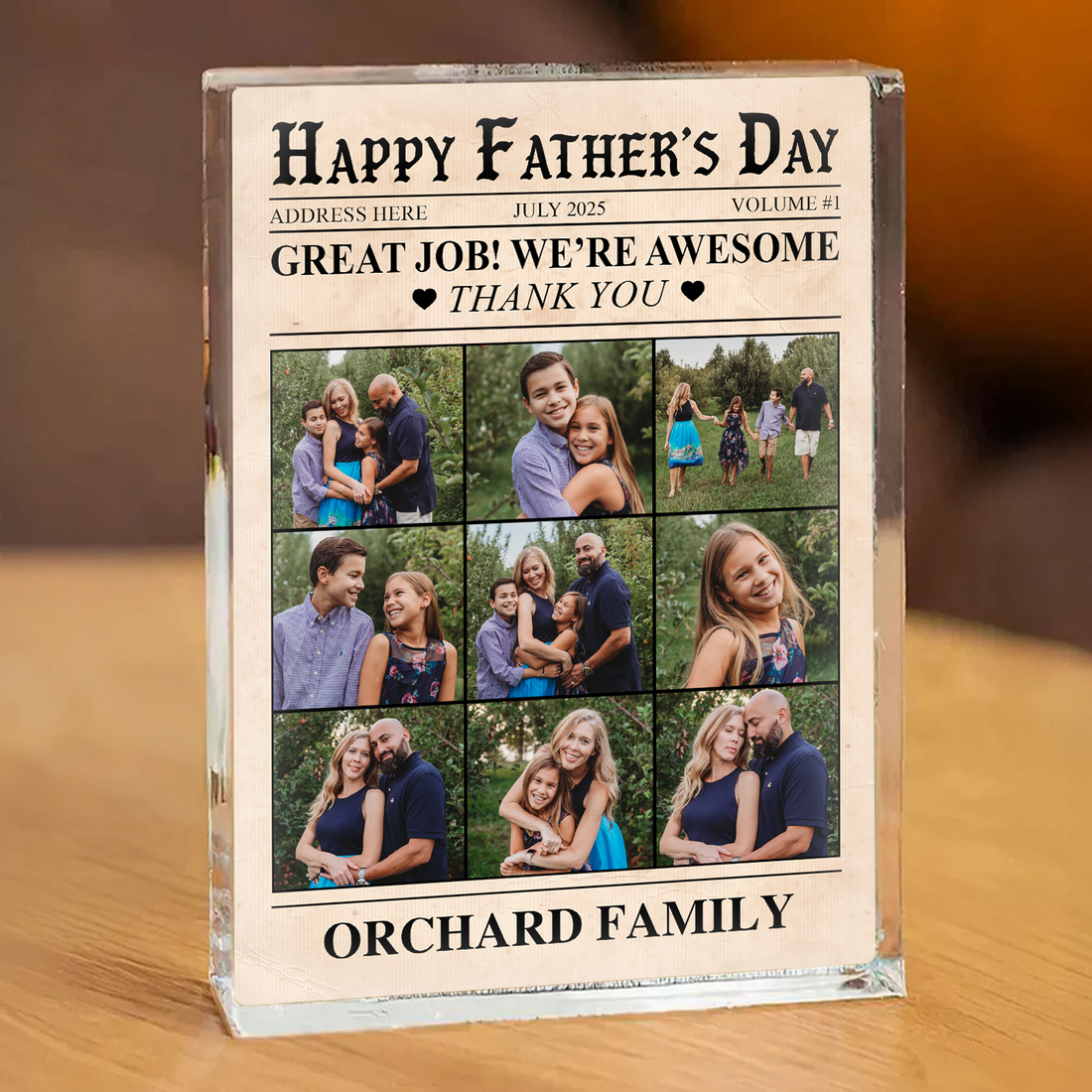 Happy Father's Day - Personalized Family Name and Photo Gift - Custom Shape Acrylic Block Plaque