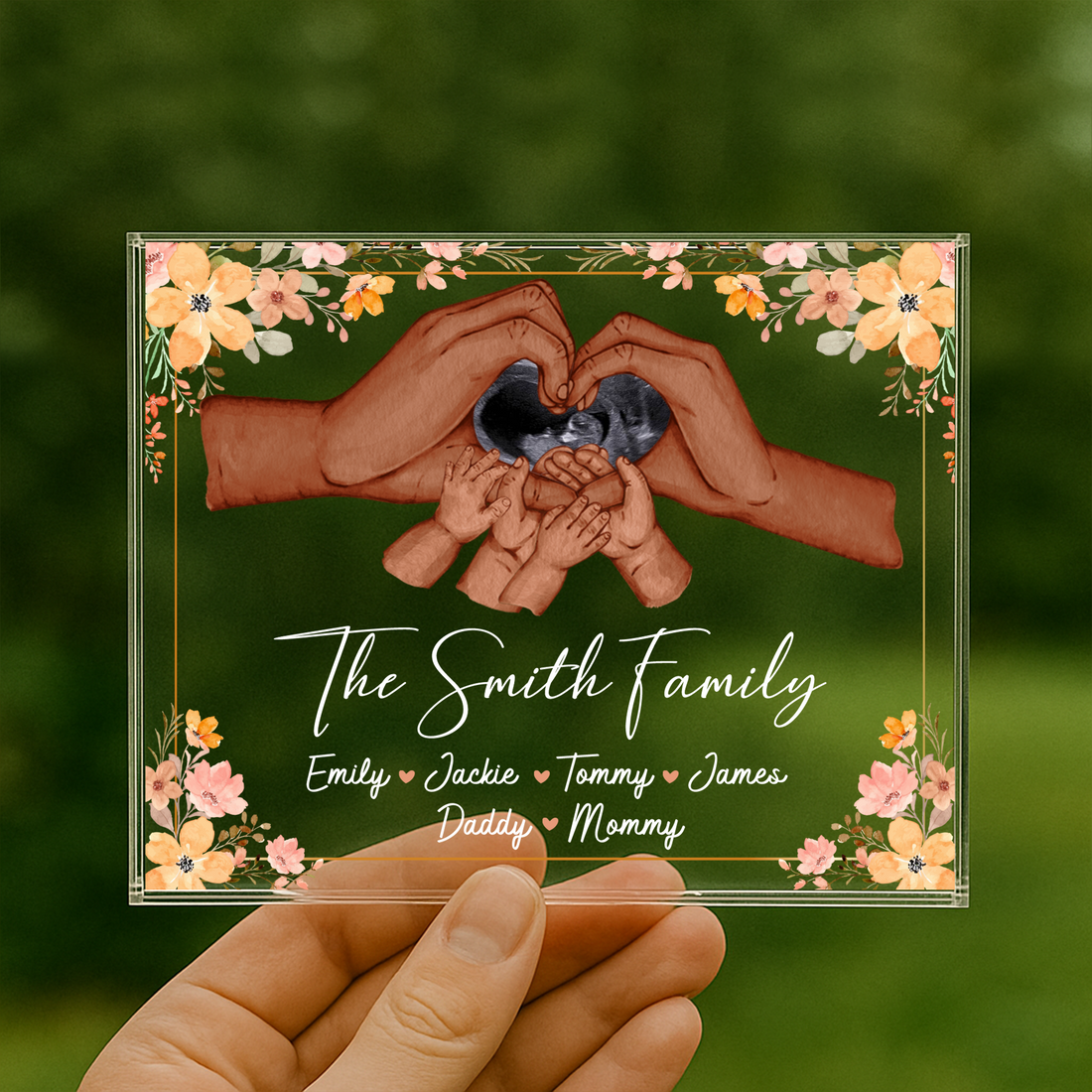 Family Hand with Heart - Personalized Name Gift - Custom Shape Acrylic Block Plaque