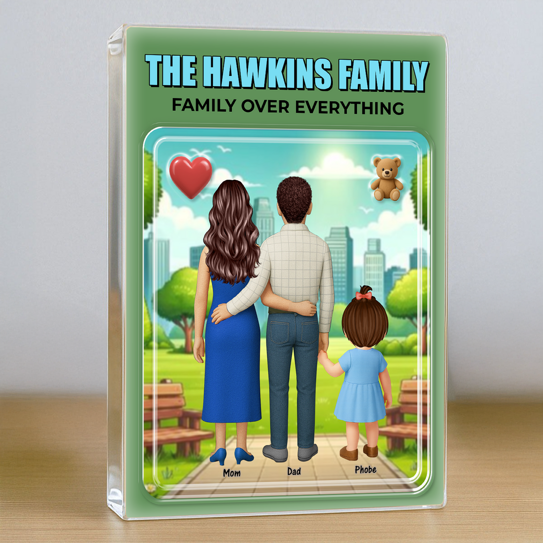 Family Bear - Personalized Name Gift - Custom Shape Acrylic Block Plaque