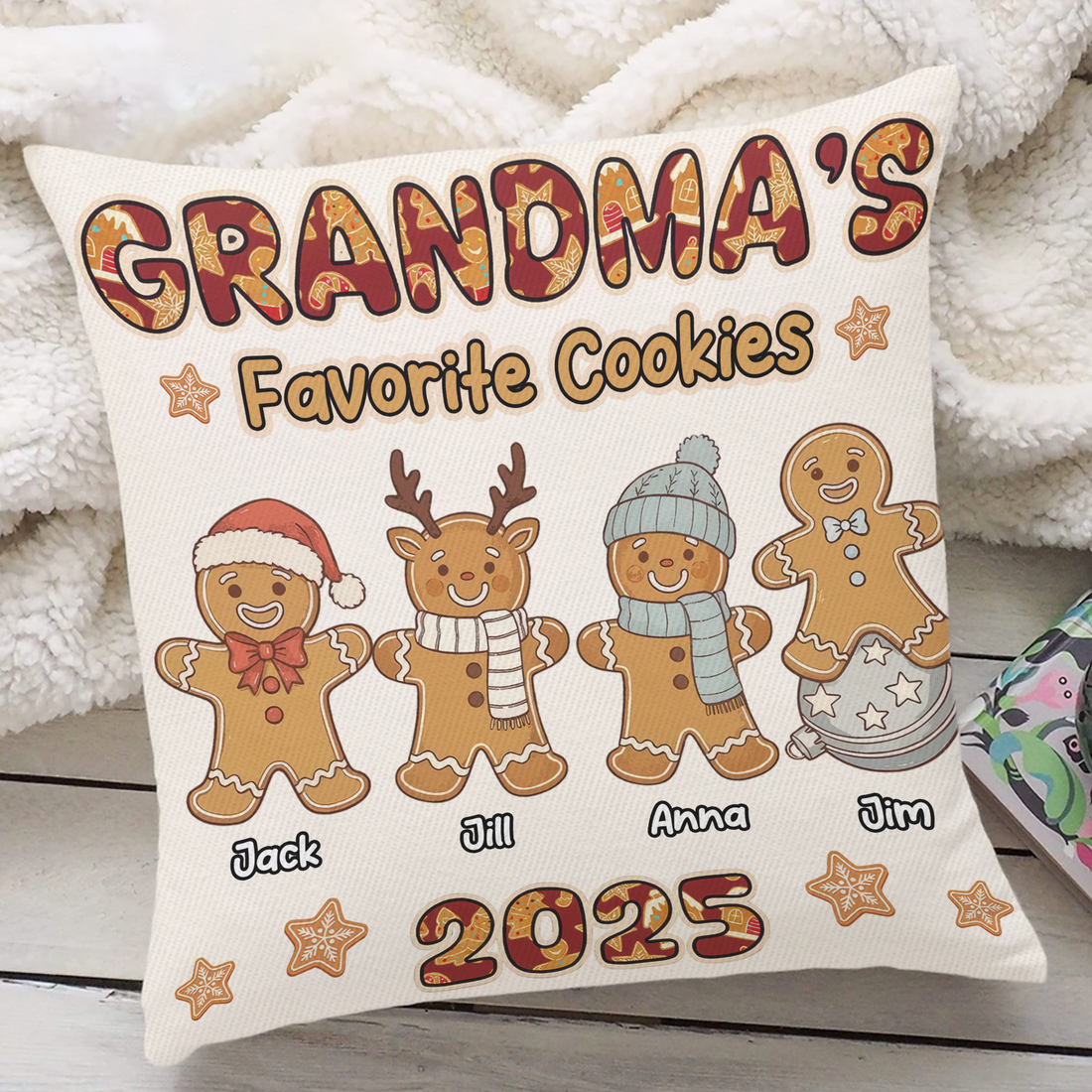 Custom Name - Grandma Favorite Cookies - Personalized Pillow - Christmas Gift