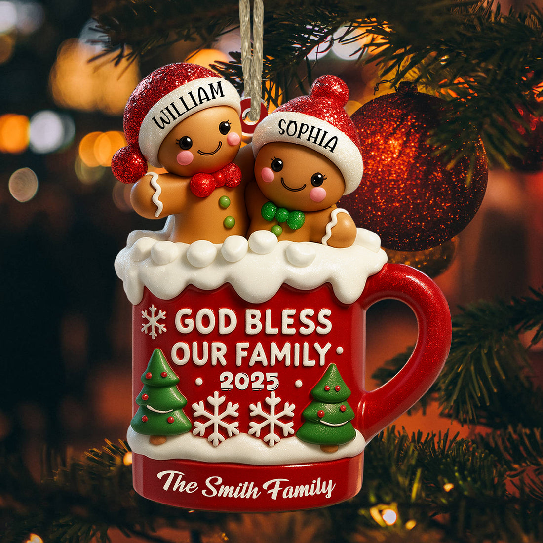 God Bless Our Family - Custom Name - Personalized Acrylic Ornament - Family Decoration
