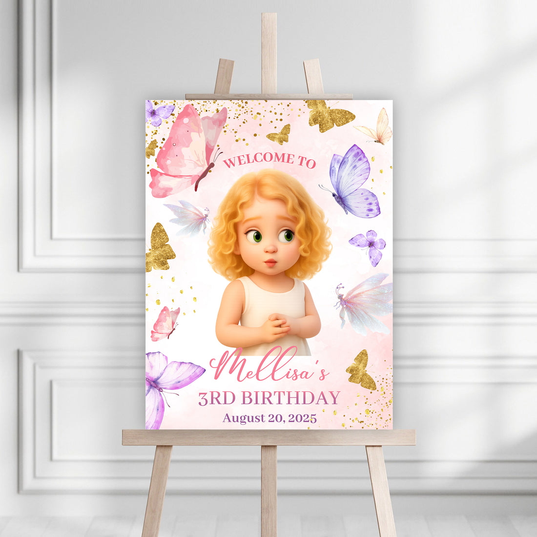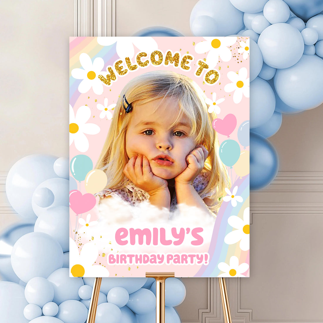 Birthday Party Sign Cute Style - Custom Name & Photo Law Sign - Birthday Party Welcome Sign