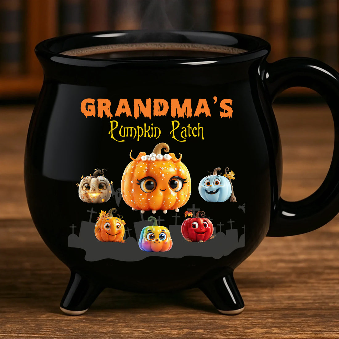 Grandma's Pumpkin Patch - Personalized Ceramic Cauldron Coffee Mug