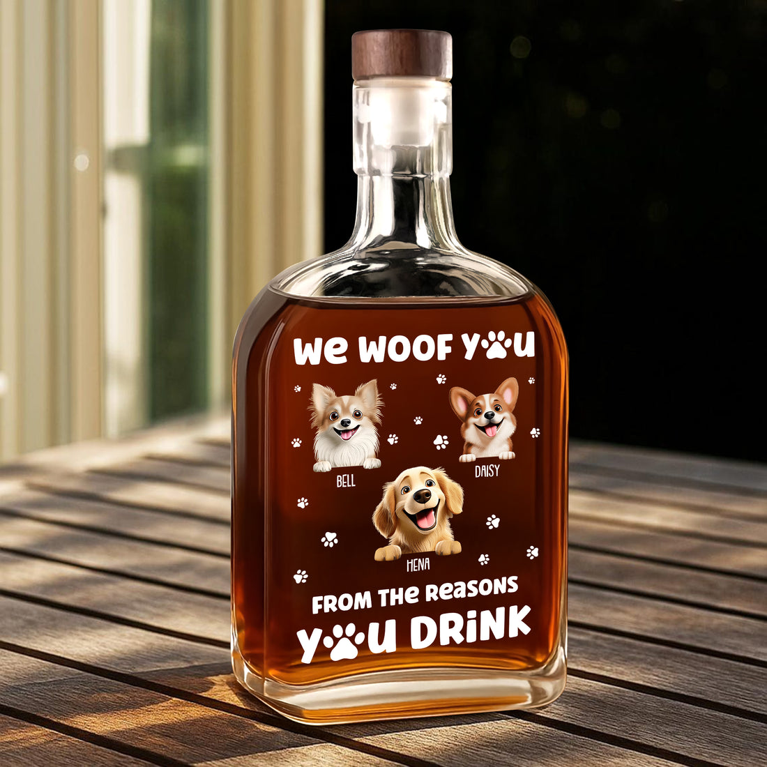 We Woof You - Custom Pet Photo and Name - Personalized Custom Whiskey Bottle
