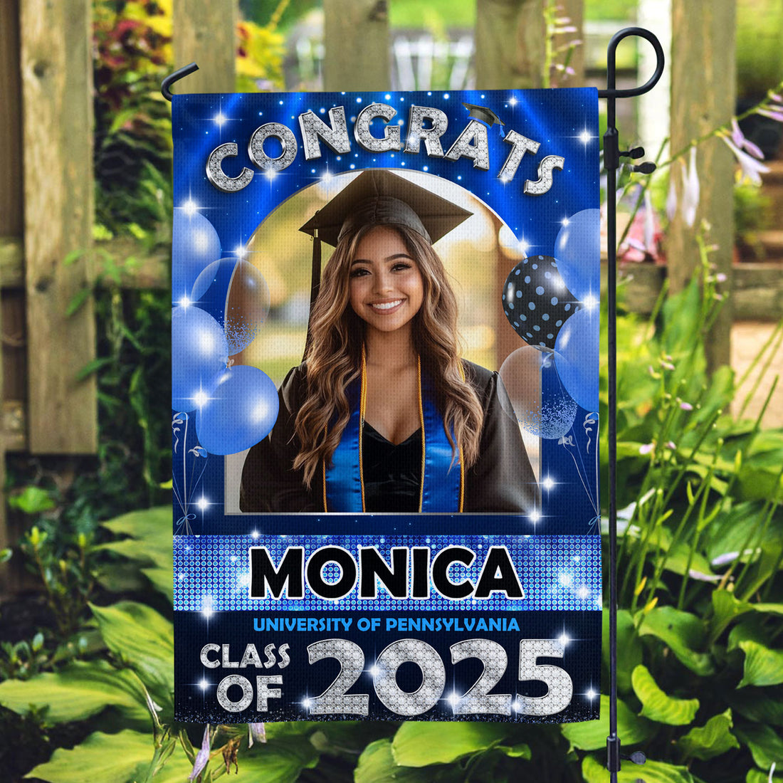 Glitter Congrats Graduation 2025 - Custom Name Class Of 2025 With Photo – Graduation Garden Flag & Party Decor