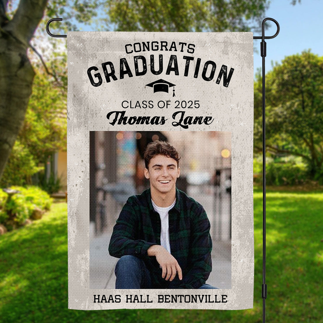 Custom Graduation Flag | Congrats Graduate Class Of 2025 With Photo – Graduation Garden Flag & Party Decor