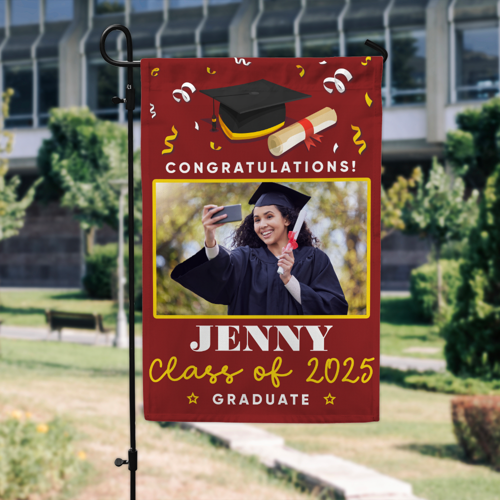 Custom Photo Flag Congrats Senior 2025 Graduation Garden Flag, Graduation Decorations