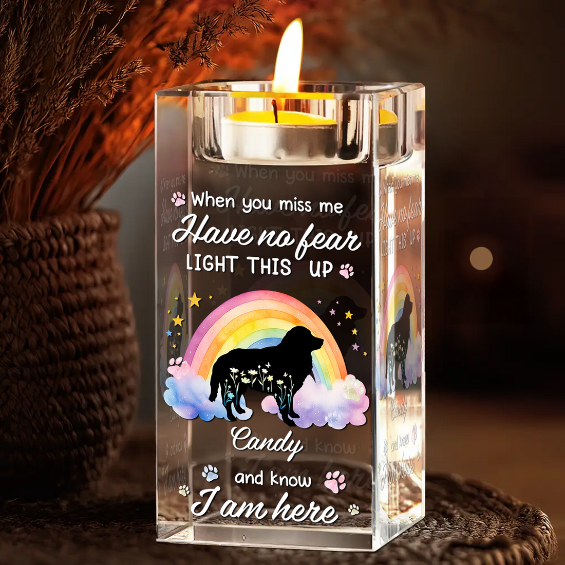 When You Miss Me Light This Up - Personalized Crystal Candle Holder - Pet Memorial