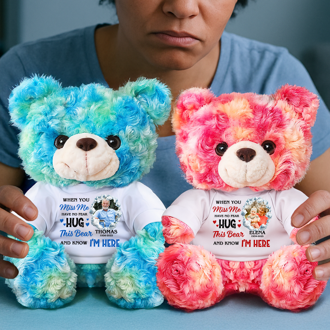 When You Miss Me Hug This Bear - Personalized Memorial Bear Plush - Custom Photo and Name Bear