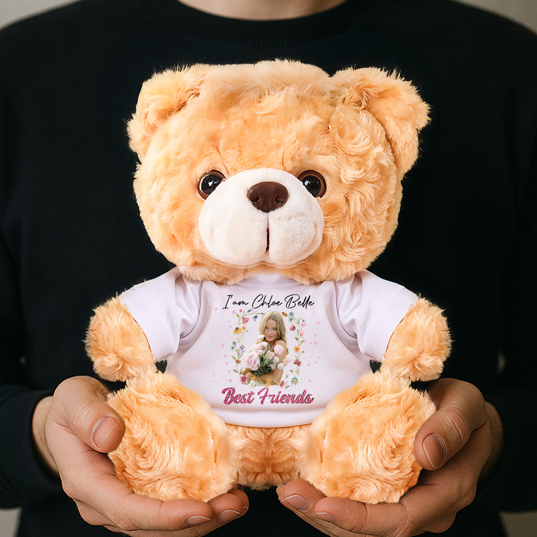 Personalized Teddy Bear Plush for Bestie - Custom Photo and Name - Personalized Plush Bear