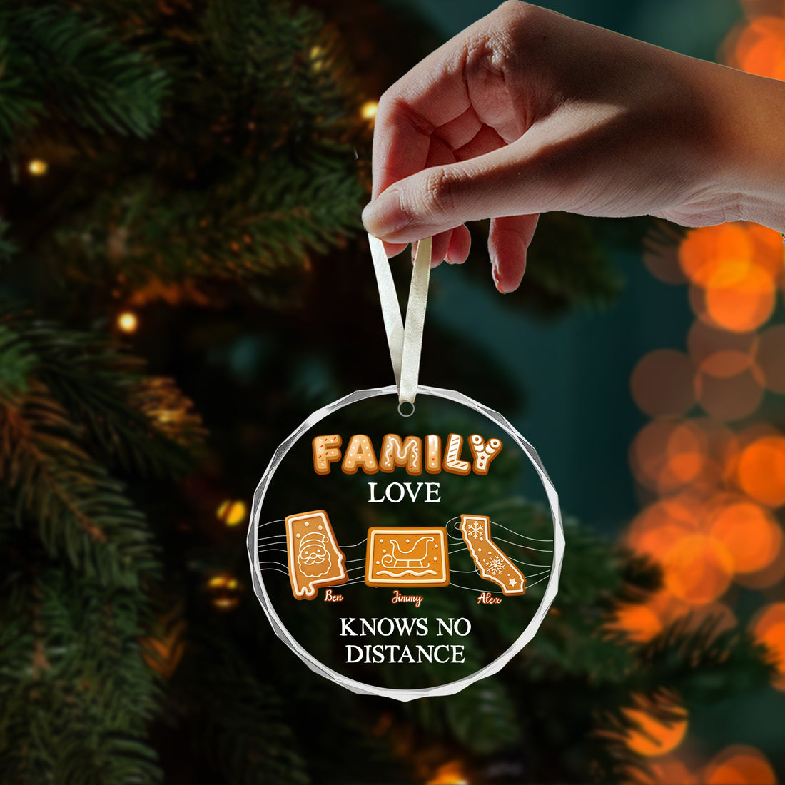 Family Love Knows No Distance - Custom State - Personalized Glass Ornament