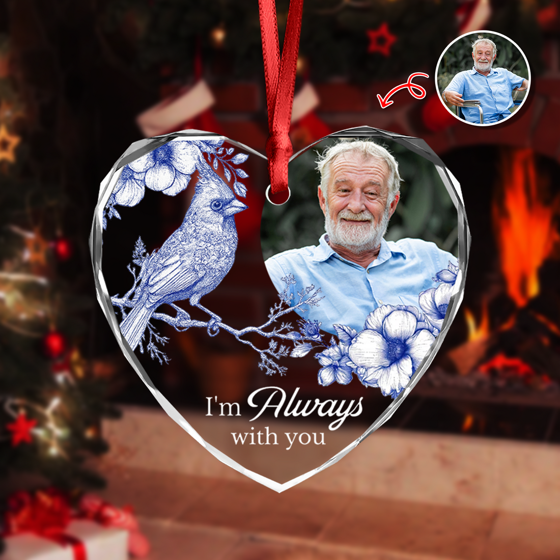 I am Always With You Cardinal- Personalized Photo Car Ornament With Charm