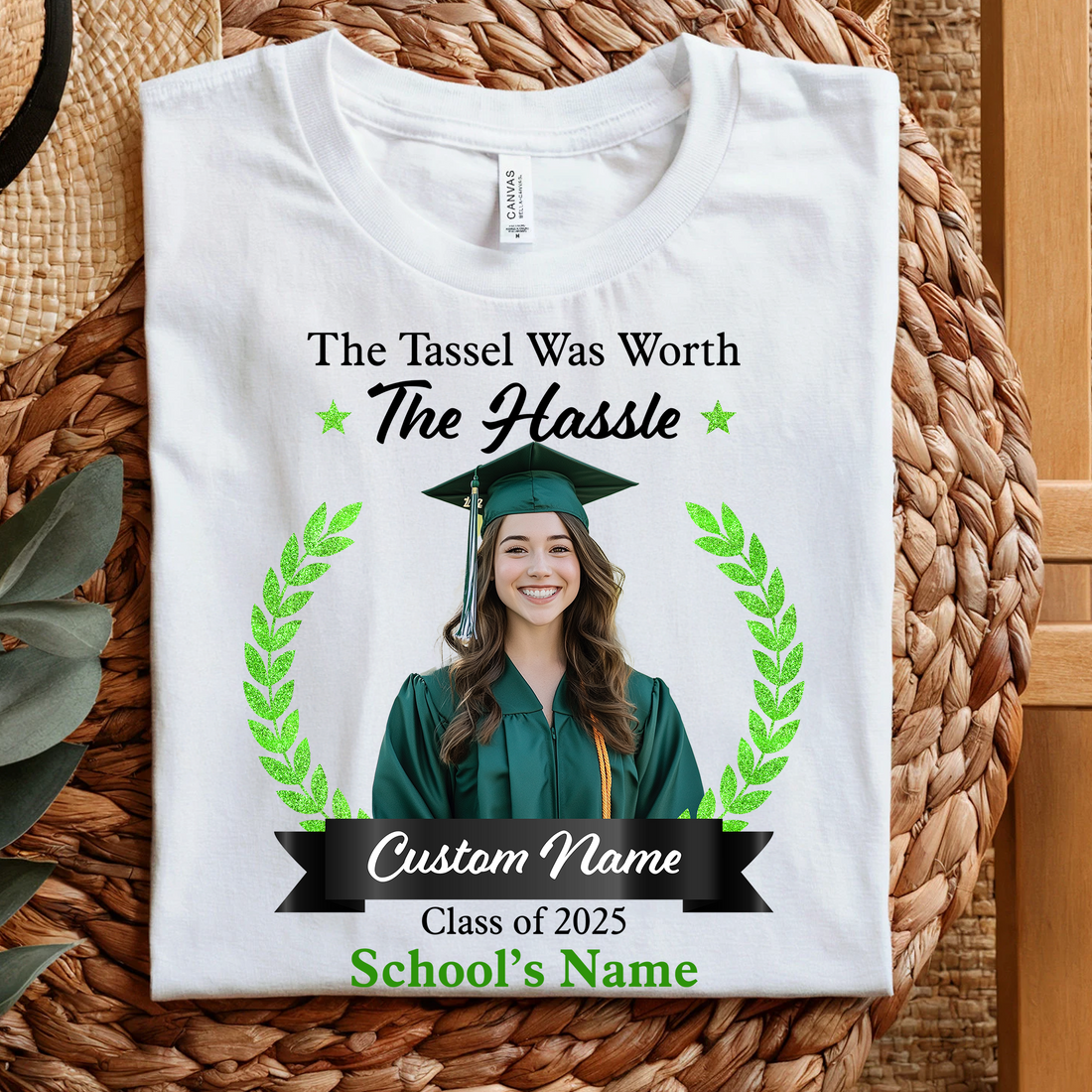 The Tassel Was Worth The Hassle Personalized Class Of 2025 Graduate T-Shirt , Custom Name, School & Photo