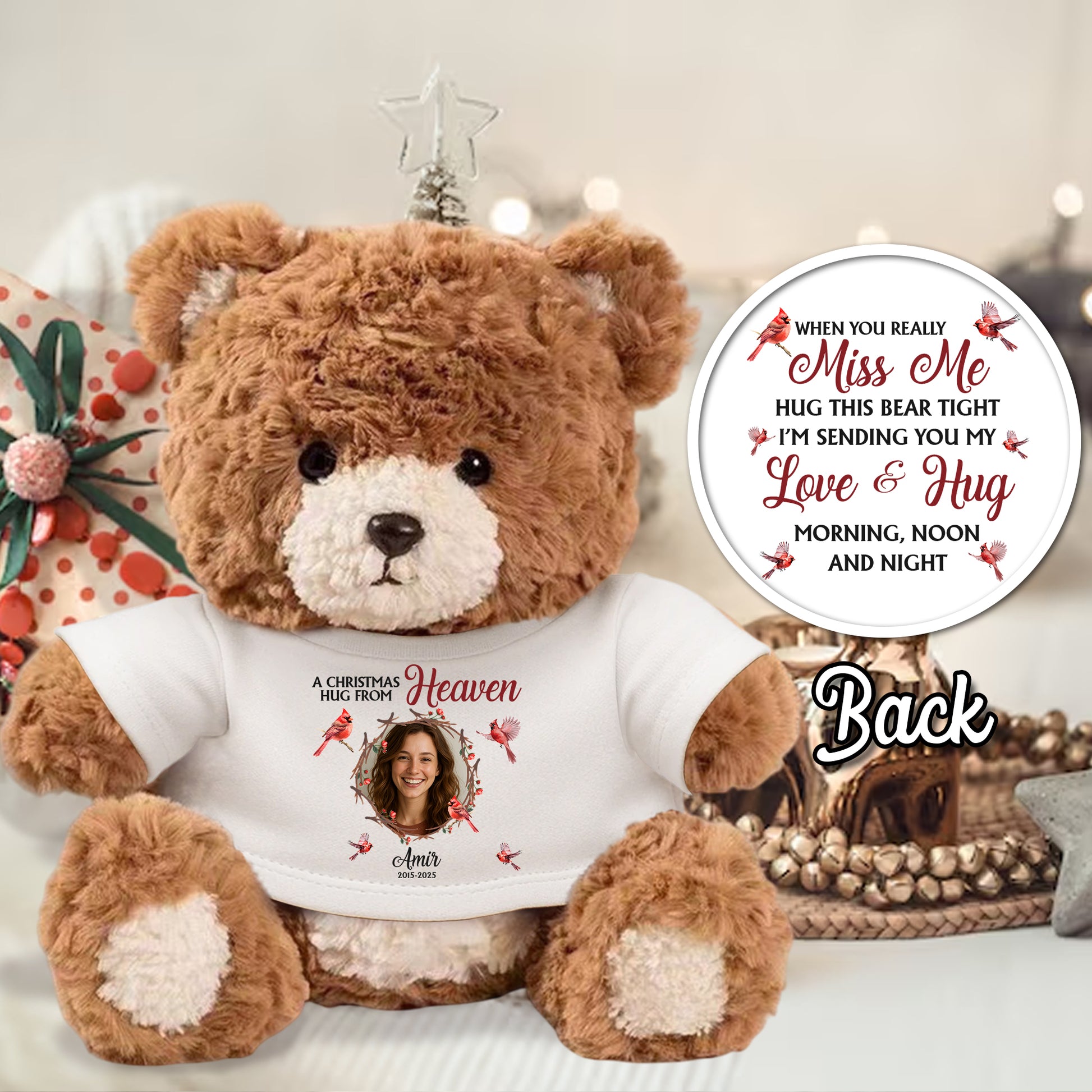 A Christmas Hug From Heaven - Memorial Bear Plush - Custom Photo Cute Bear