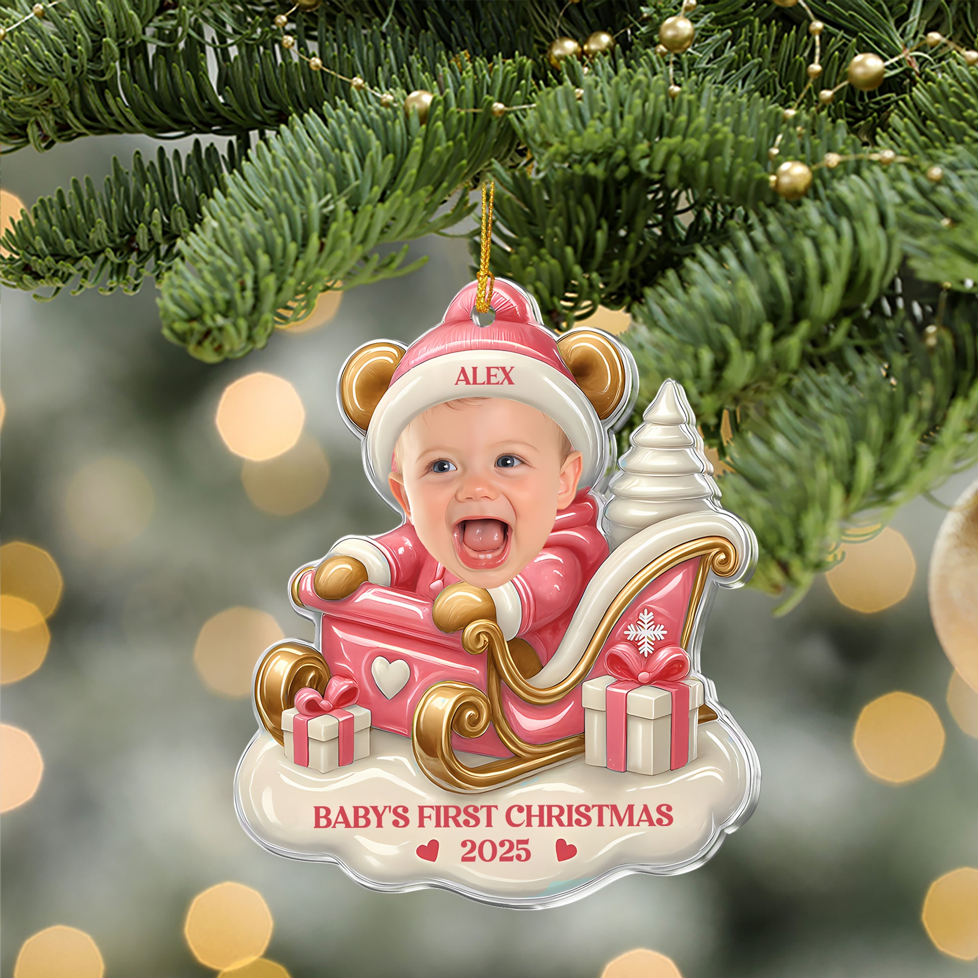 Baby First Christmas - Custom Name and Photo - Custom Shape Hologram Ornament - Christmas Decor