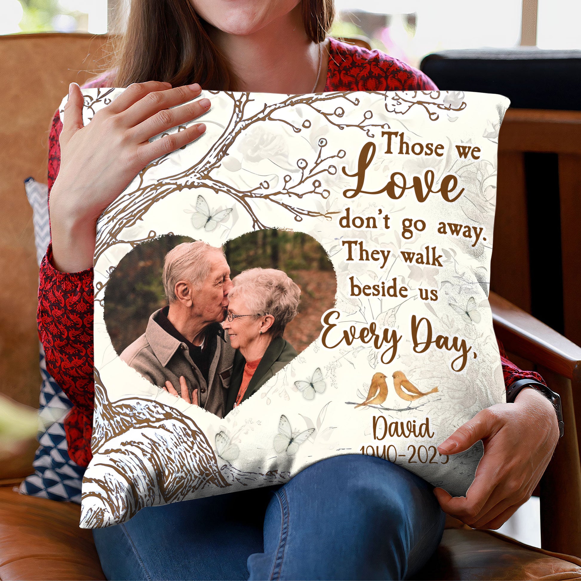 Custom Name and Photo - Love Walks Beside Us - Personalized Memorial Pillow