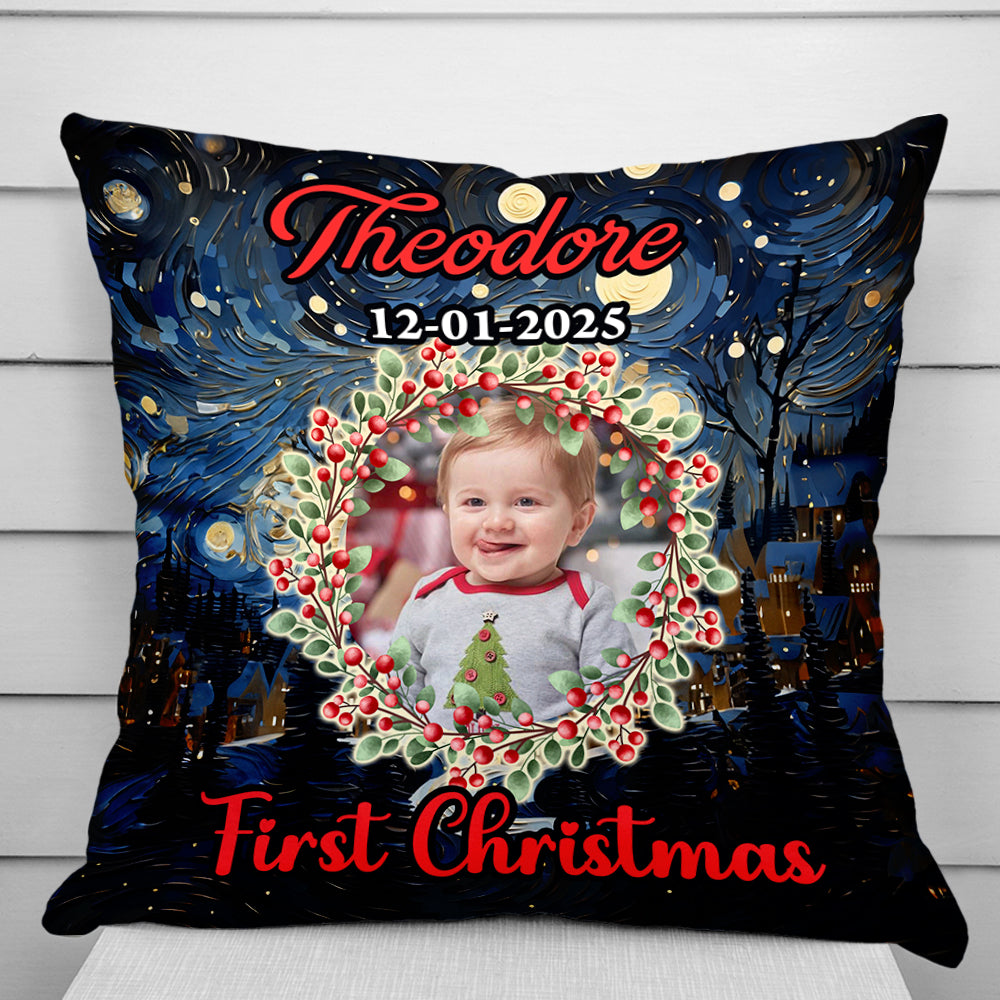 Custom Baby Photo & Name - Merry Christmas Pillow - Personalized Custom Pillow