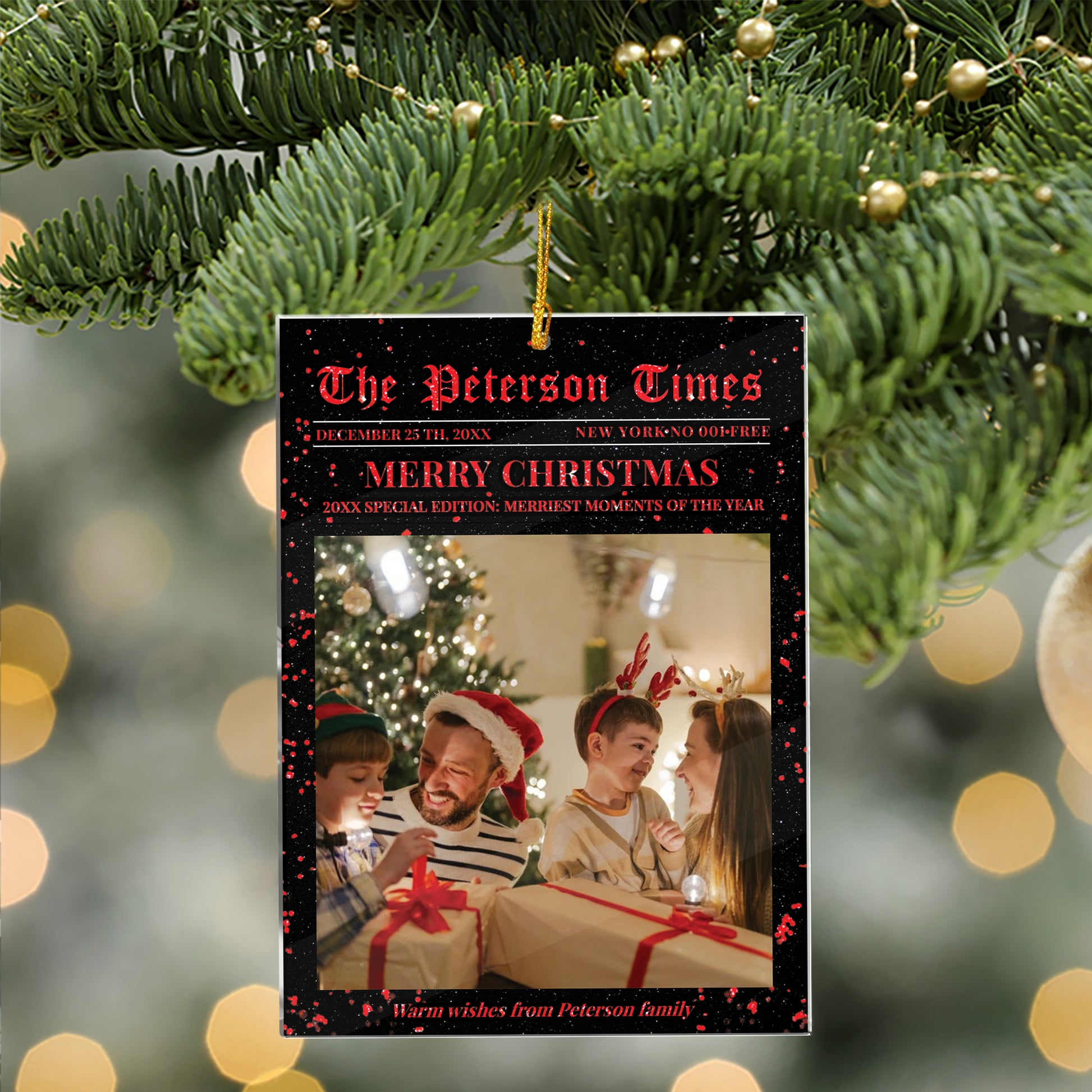 Family Christmas Photo - Custom Photo - Custom Shape Hologram Ornament - Home Christmas Decor