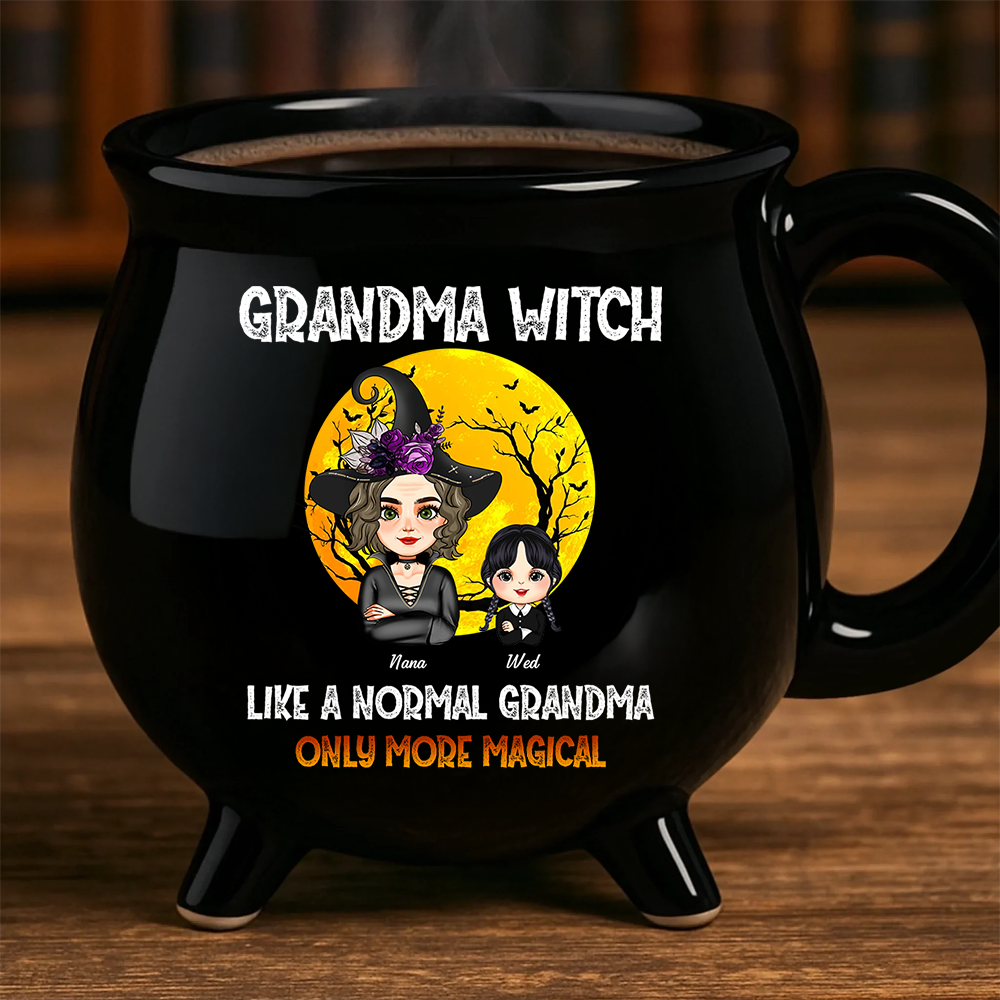 Grandma Witch - Custom Name and Appearance - Personalized Ceramic Cauldron Coffee Mug - Halloween Gift for Grandma