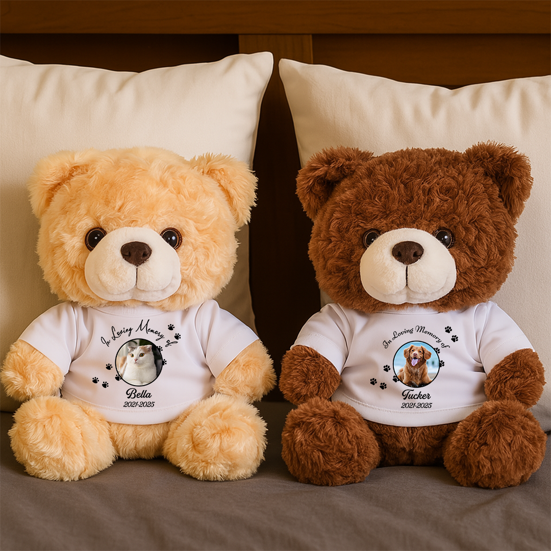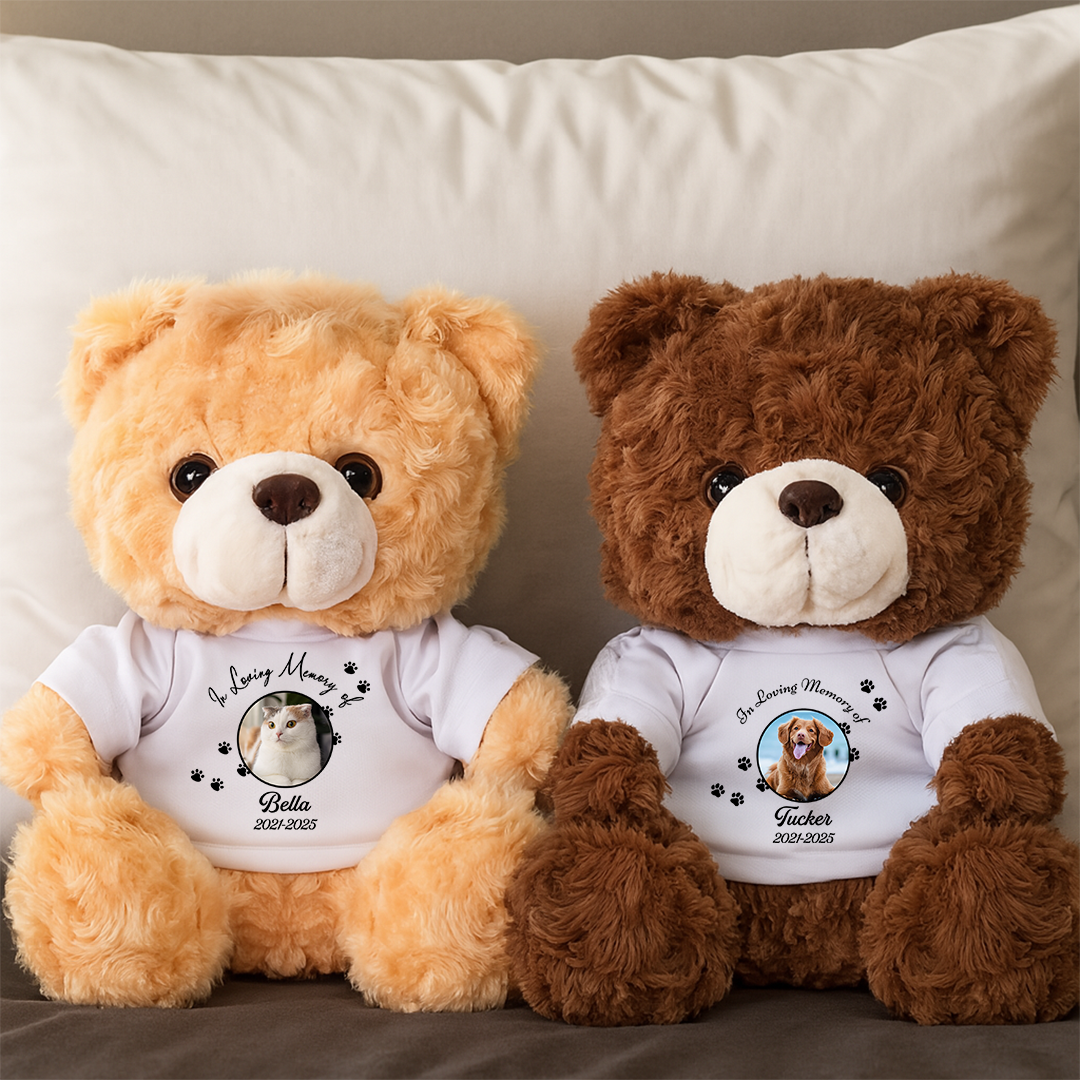 In Loving Memory Pet Memorial - Personalized Memorial Bear Plush - Custom Name and Photo Teddy Bear
