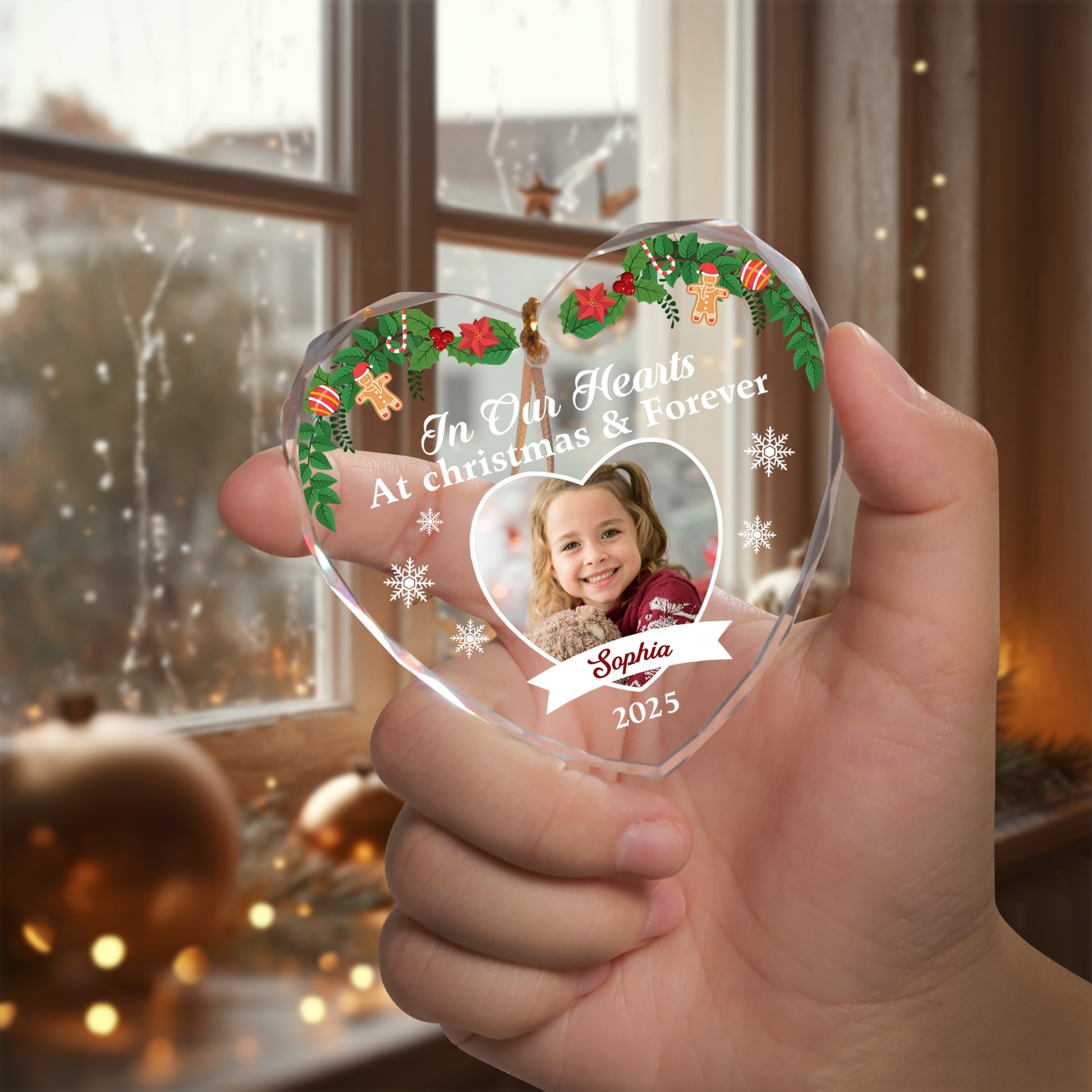 In Our Hearts - Custom Name and Photo - Personalized Glass Ornament - Memorial Gift