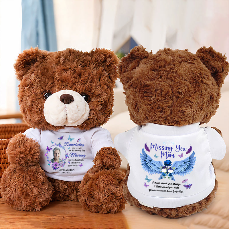 Missing You Mom - Personalized Memorial Bear Plush - Custom Name and Photo Teddy Bear