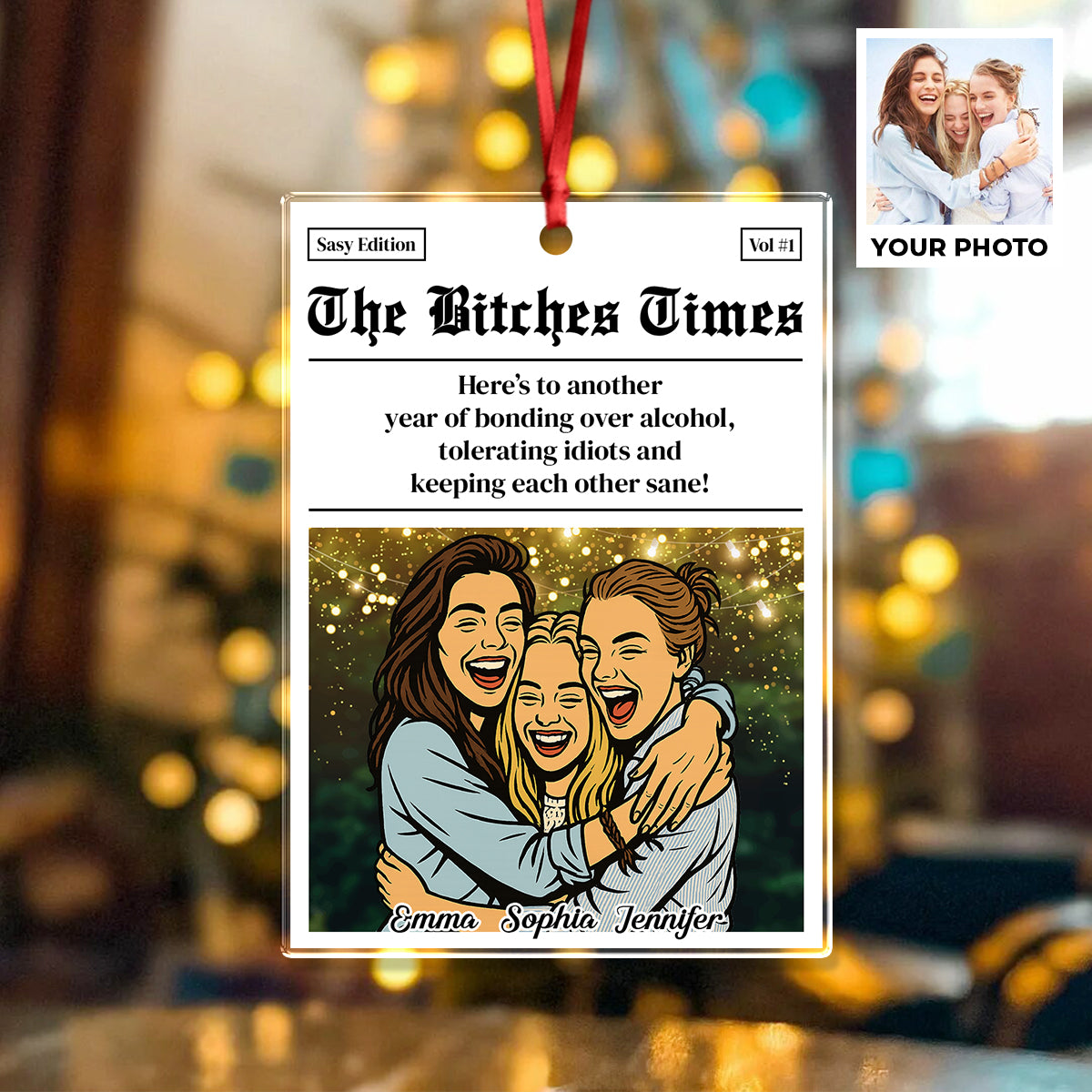 The Bitches Times - Custom Name and Photo Bestie Gift - Custom Shape Hologram Ornament