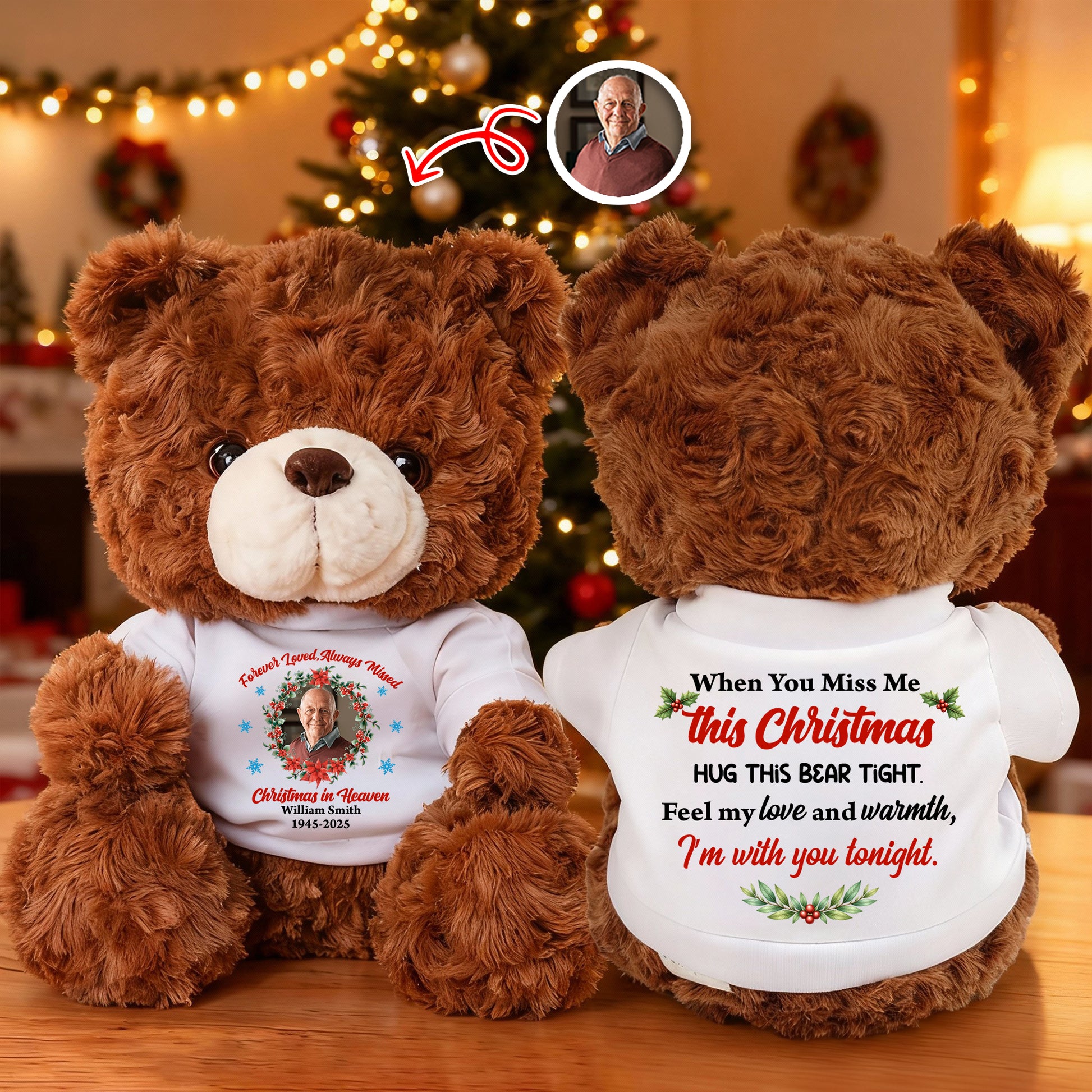 When You Miss Me This Christmas - Sympathy Gift - Custom Name and Photo - Personalized Bear Plush